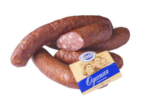 Состав: говядина, шпик свиной, свинина, вода, соль, чеснок, фиксатор окраски нитрит натрия, антислеживающий агент ферроцианид натрия, стабилизатор пирофосфат, пряности, экстракты пряностей, декстроза, усилитель вкуса и аромата глутамат натрия 1-замещенный, антиокислитель аскорбиновая кислота.
